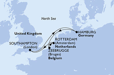 Velká Británie, Německo, Belgie, Nizozemsko ze Southamptonu na lodi MSC Preziosa