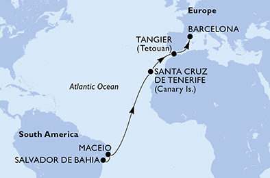 Brazílie, Španělsko, Maroko ze Salvadoru na lodi MSC Virtuosa