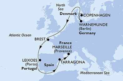 Dánsko, Německo, Francie, Portugalsko, Španělsko z Kodaně na lodi MSC Magnifica