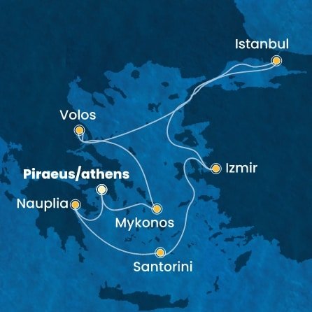 | 1. | 1. Pireus (Athény) / Řecko (nalodění) | --:-- | 23:00 |