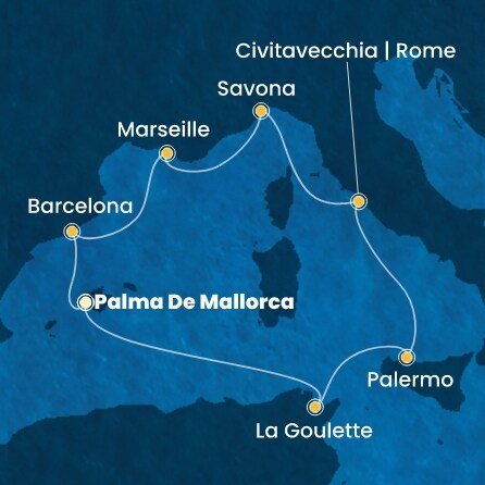 | 9. | 9. Palma de Mallorca (Mallorca) / Španělsko (vylodění) | 07:30 | --:-- |