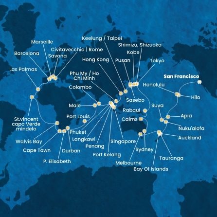 | 60. | 02.03.2028, Čt | 60. Port Klang (Kuala Lumpur) / Malajsie | 09:00 | 19:00 |