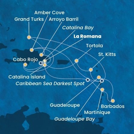 | 3. | 12.01.2027, Út | 3. Arroyo Barril (Samaná) / Dominikánská republika | 08:00 | 18:00 |