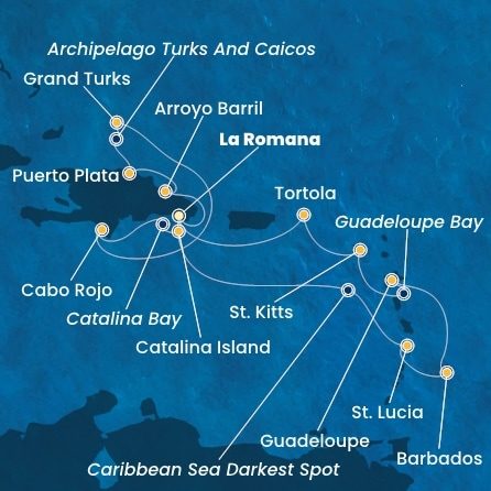 | 7. | 13.02.2027, So | 7. Arroyo Barril (Samaná) / Dominikánská republika | 08:00 | 18:00 |