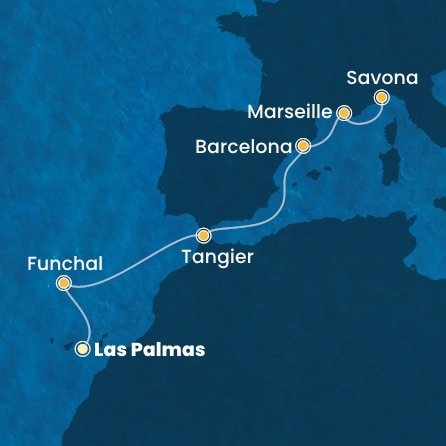 | 1. | 07.05.2027, Pá | 1. Las Palmas (Gran Canaria) / Španělsko (nalodění) | --:-- | 20:00 |
