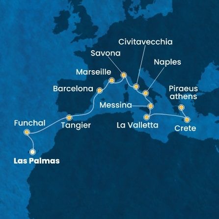 | 1. | 07.05.2027, Pá | 1. Las Palmas (Gran Canaria) / Španělsko (nalodění) | --:-- | 20:00 |
