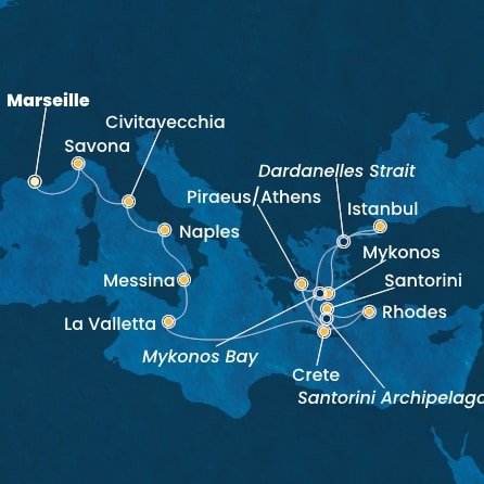 | 12. | 24.05.2027, Po | 12. Mykonos / Řecko | 15:00 | 23:00 |