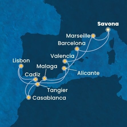 | 7. | 10.05.2027, Po | 7. Casablanca / Maroko | 08:00 | 21:00 |