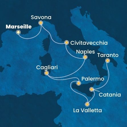 | 7. | 04.06.2027, Pá | 7. Valletta / Malta | 10:00 | 19:00 |