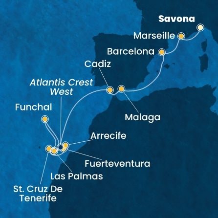 | 1. | 12.11.2026, Čt | 1. Savona / Itálie (nalodění) | --:-- | 18:00 |