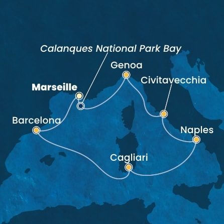 | 8. | 24.04.2027, So | 8. Proplouvání zálivem Národního parku Calanques / Francie | 06:00 | 07:00 |