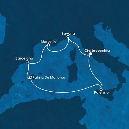| 7. | 25.02.2027, Čt | 7. Palermo (Sicílie) / Itálie | 08:00 | 16:30 |