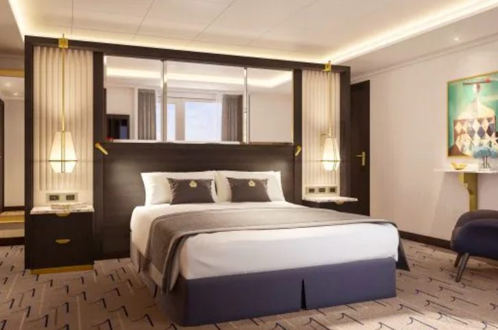 Ubytování v Queens Grill Suites zahrnuje vstup do privátní restaurace Queens Grill, Grills Lounge a venkovní Grills Terrace, povečeřet lze i v apartmá z nabídky exkluzivního menu Queens Grill. Dále hosté daných apartmá mají nárok na přednostní nalodění a vylodění, k službám je jim k dispozici komorník a stevard udržující pořádek a concierge určený pro rezervace na palubě a realizaci zážitků na pobřeží. Součástí apartmá je prostorná společenská místnost s posezením, satelitní TV s filmovými a hudebními kanály v ložnici a obývacím pokoji, psací stůl s fénem, dále ložnice s postelí, kterou lze konfigurovat na king-size nebo dvě samostatné postele, plus výběr z polštářového menu, také koupelna s vanou a sprchovým koutem, toaletní potřeby, luxusní župany a pantofle. Nechybí ani prostorný soukromý balkon s posezením a výhledem na moře či dalekohled a atlas světa ke sledování cest. Hosty jistě také potěší láhev šampaňského na uvítanou, denní nabídka čerstvého ovoce, jednohubky před večeří, bezplatný minibar zásobený výběrem piva, vína, lihovin a nealkoholických nápojů či speciální zařízení na přípravu čaje a kávy.