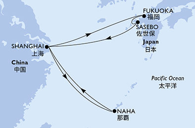 | 7. | 20.08.2026, Čt | 7. Fukuoka (Kjúšú) / Japonsko | 07:00 | 21:00 |