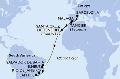 | 14. | 03.12.2026, Čt | 14. Ilheus / Brazílie | 08:00 | 18:00 |