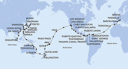 92. | 06.04.2026, Po | 92. Singapur / Singapur (vylodění) | 08:00 | --:-- |