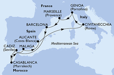 | 10. | 06.01.2028, Čt | 10. Marseille / Francie | 08:00 | 18:00 |