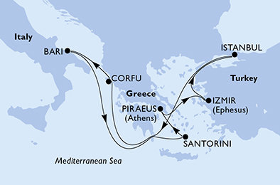 | 6. | 24.04.2027, So | 6. Bari / Itálie | 07:00 | 19:00 |