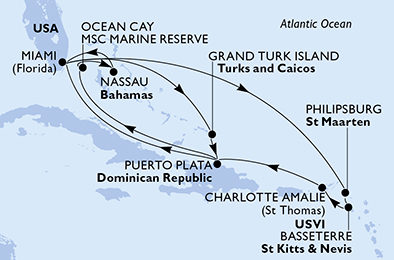 | 14. | 31.12.2027, Pá | 14. Ocean Cay MSC Marine Reserve (Ocean Cay) / Bahamy | 08:00 | 18:00 |