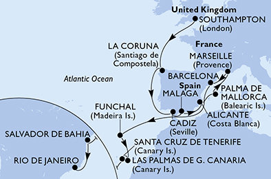 | 25. | 01.12.2026, Út | 25. Rio de Janeiro / Brazílie (vylodění) | 08:00 | --:-- |