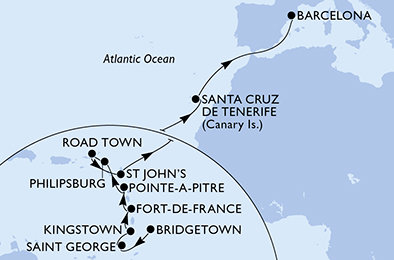 | 4. | 09.04.2027, Pá | 4. Kingstown / Svatý Vincenc a Grenadiny | 08:00 | 19:00 |