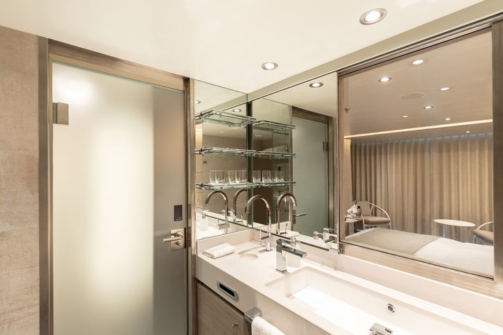 U menších kajut jsou obývací část a ložnice odděleny závěsy, u těch větších jde pak o samostatné místnosti. Nechybí televize s plochou obrazovkou ani šatna, trezor, mini bar zásobený nápoji dle preferencí hostů, fén, župan, pantofle nebo dalekohled. Ve všech koupelnách bez rozdílu jsou sprchový kout, vana, umyvadlo a dostatek úložných prostor.