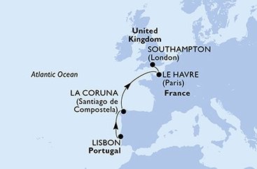 Velká Británie, Francie, Španělsko ze Southamptonu na lodi MSC Virtuosa