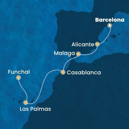 | 7. | 25.12.2026, Pá | 7. Funchal (Madeira) / Portugalsko (vylodění) | 14:00 | --:-- |