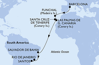 | 17. | 02.12.2026, St | 17. Santos / Brazílie (vylodění) | 06:00 | --:-- |