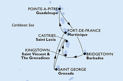 | 7. | 12.02.2028, So | 7. Fort-de-France (Martinik) / Zámořský departement Francie | 07:00 | 23:00 |
