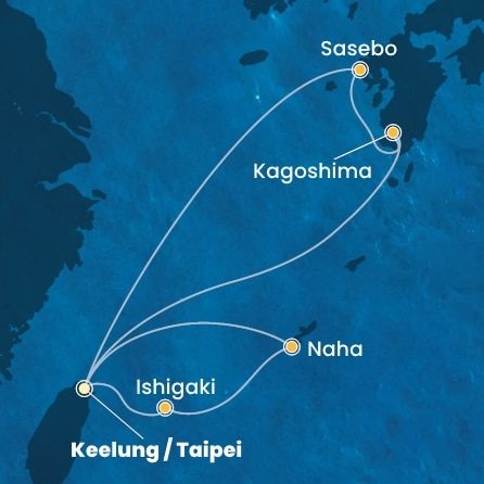 | 6. | 18.04.2026, So | 6. Keelung (Taipei) / Tchaj-wan | 08:00 | 16:00 |