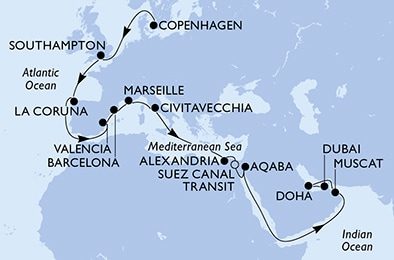 | 28. | 28. Dubaj / Spojené arabské emiráty (vylodění) | 08:00 | --:-- |