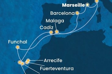 Zažijte celoročně mírné klima překrásného koutu světa při výletní plavbě na Kanárské ostrovy. Pronikněte do zajímavé historie španělského souostroví v Atlantském oceánu a seznamte se s jeho bohatou kulturou a tradicí. Relaxujte na překrásných bělostných plážích a se šnorchlem objevujte fascinující život pod hladinou křišťálově čistého moře. Užijte si pohostinnost místních a neočekávané chuťové kombinace výtečné kuchyně. Zastavte se na Kanárských ostrovech při přeplavbě Atlantiku nebo jej navštivte v rámci plavby podél pobřeží jižní Evropy.