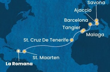 | Trasa: | Dominikánská republika, Svatý Martin, Španělsko, Maroko, Francie, Itálie |