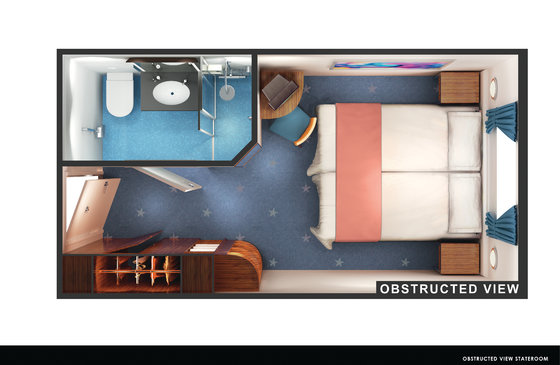 - U některých kajut s oknem kategorie Sail Away může být pouze okénko nebo obrazové okno a výhled může být zcela nebo částečně zakrytý.