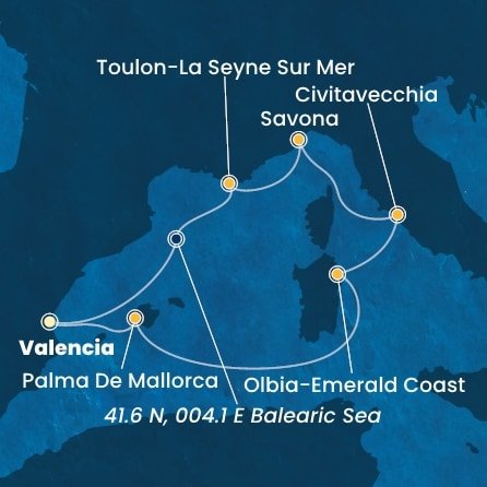 | 8. | 19.05.2025, Po | 8. Valencie / Španělsko (vylodění) | 14:00 | --:-- |