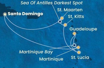 | Trasa: | Dominikánská republika, Martinik, Guadeloupe, Svatá Lucie, Svatý Kryštof a Nevis, Svatý Martin |