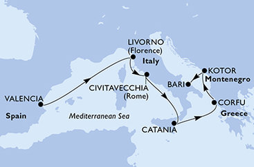 Španělsko, Itálie, Řecko, Černá Hora z Valencie na lodi MSC Orchestra