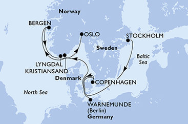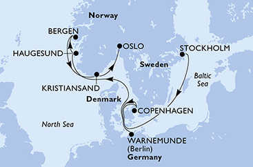 Trasa: Švédsko, Dánsko, Německo, Norsko