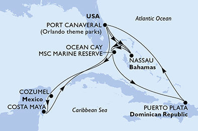 | 10. | 31.05.2027, Po | 10. Ocean Cay MSC Marine Reserve (Ocean Cay) / Bahamy | 08:00 | 18:00 |